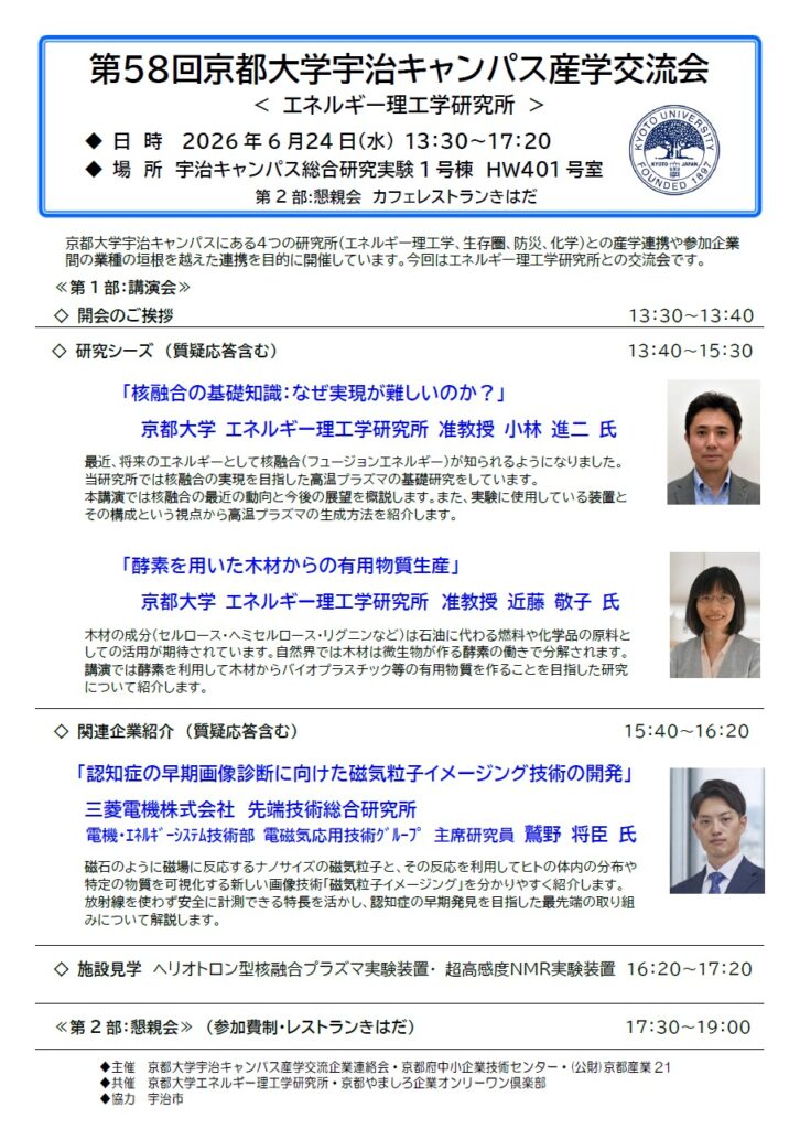 【新着R8/4/21】第58回 京都大学宇治キャンパス 産学交流会