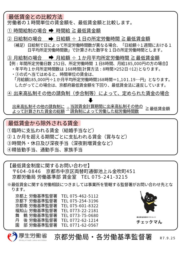 京都府内最低賃金改定のお知らせ【新着:R7/11/21】