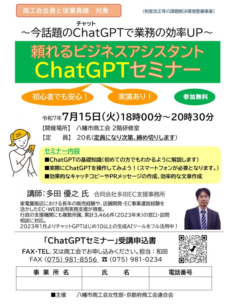 頼れるビジネスアシスタントChat GPTセミナーのご案内【新着R7/6/13】